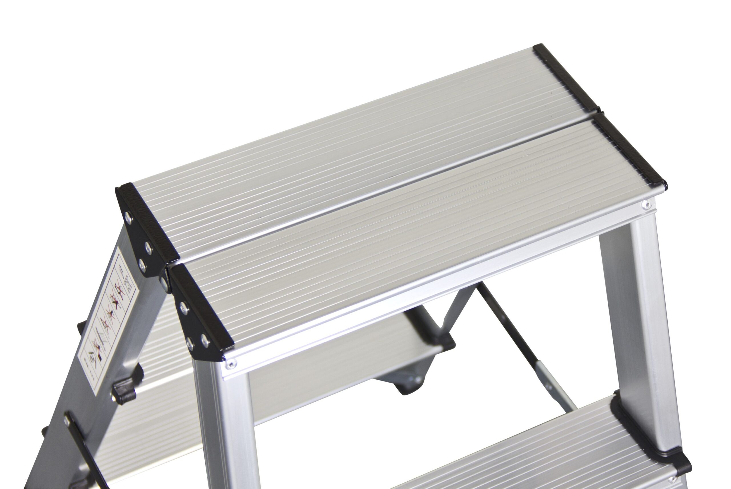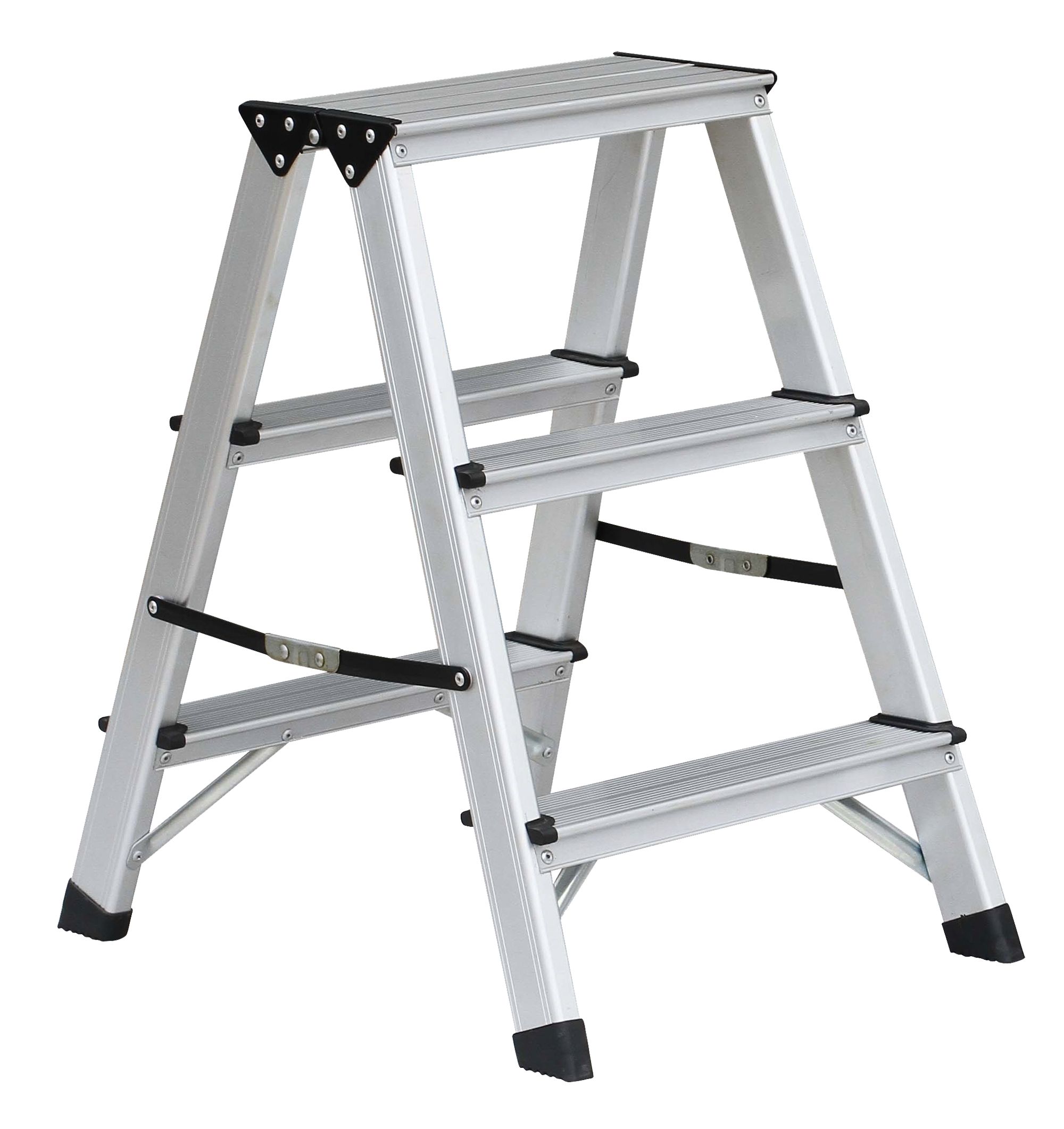Dank der Spreizsicherung und den rutschfesten Stufen ist diese Aluminium Bockleiter mit drei Stufen ein sicherer Helfer nach oben.