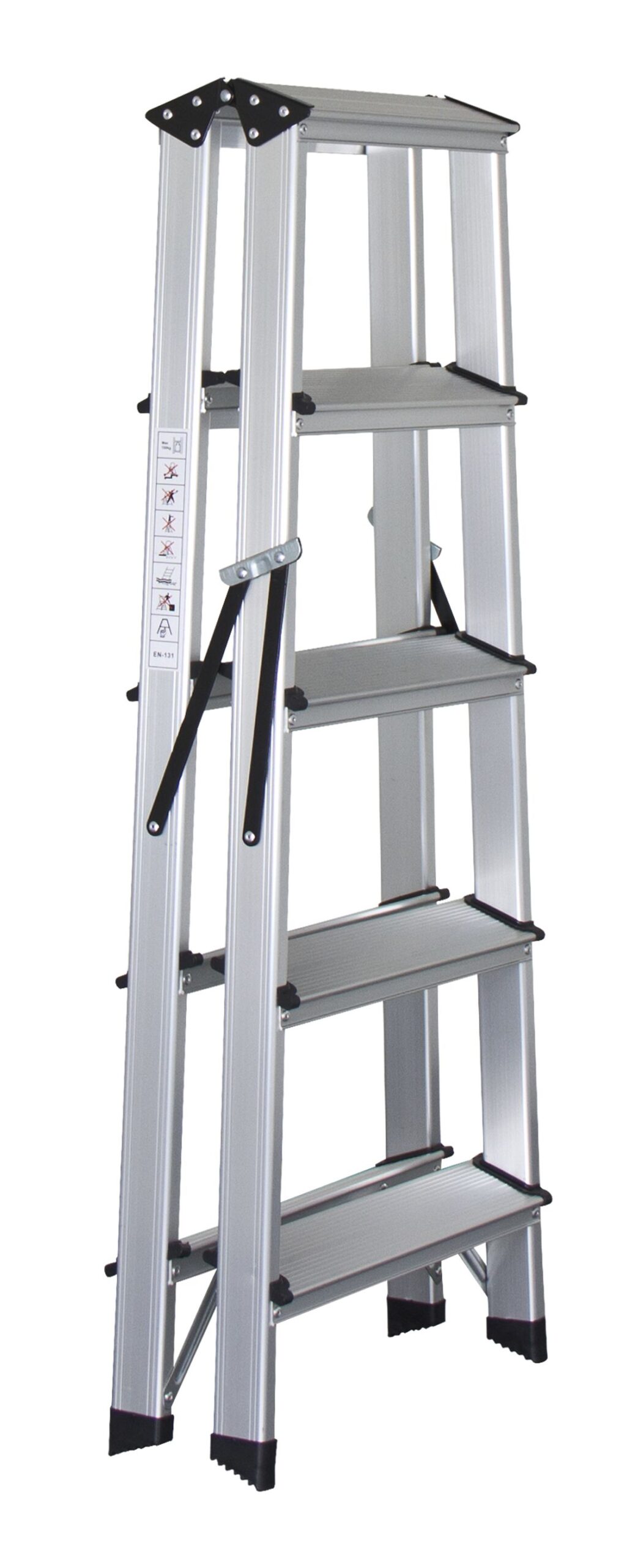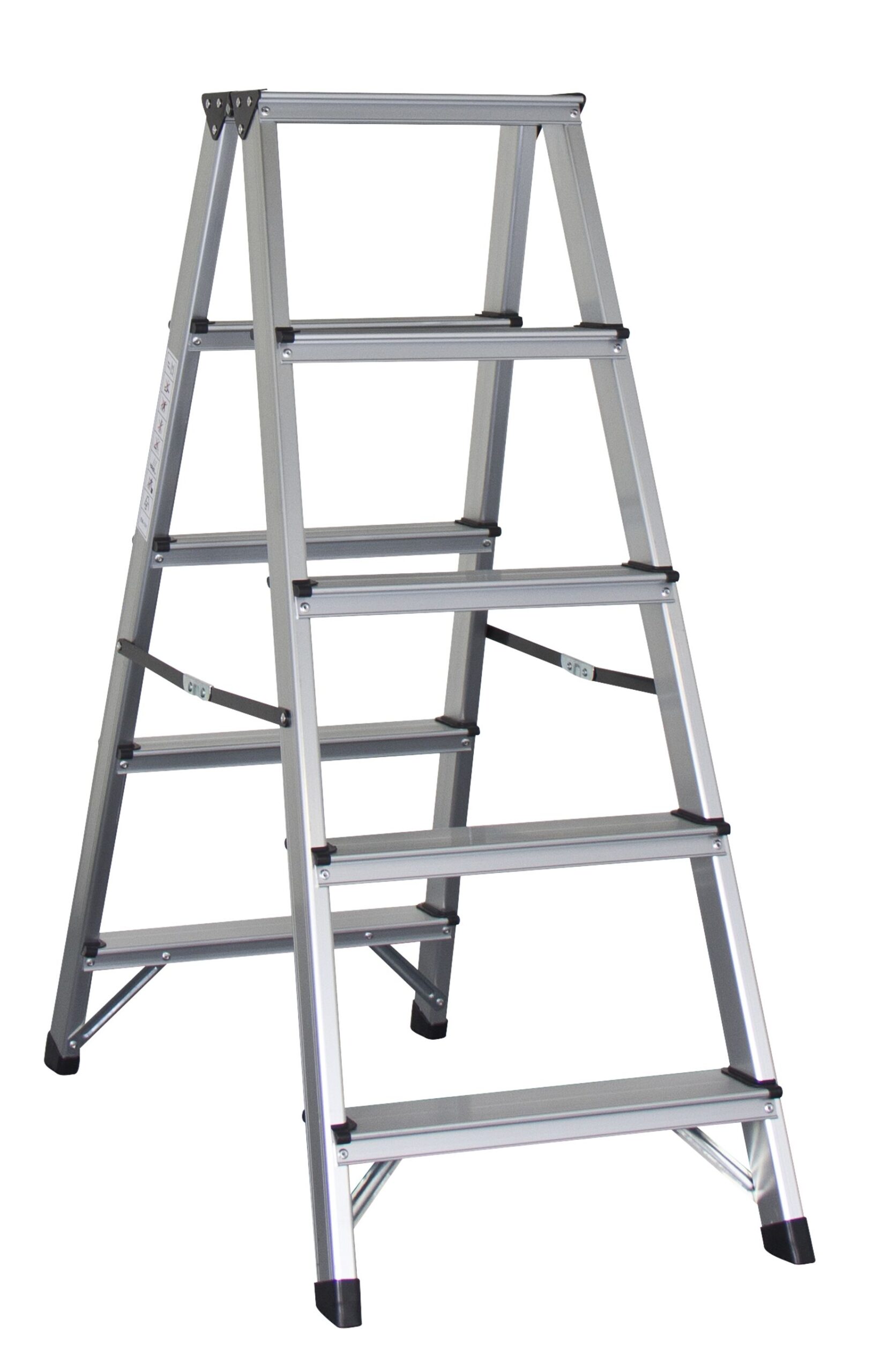 Dank der Spreizsicherung und den rutschfesten Stufen ist diese Aluminium Bockleiter mit fünf Stufen ein sicherer Helfer nach oben.
