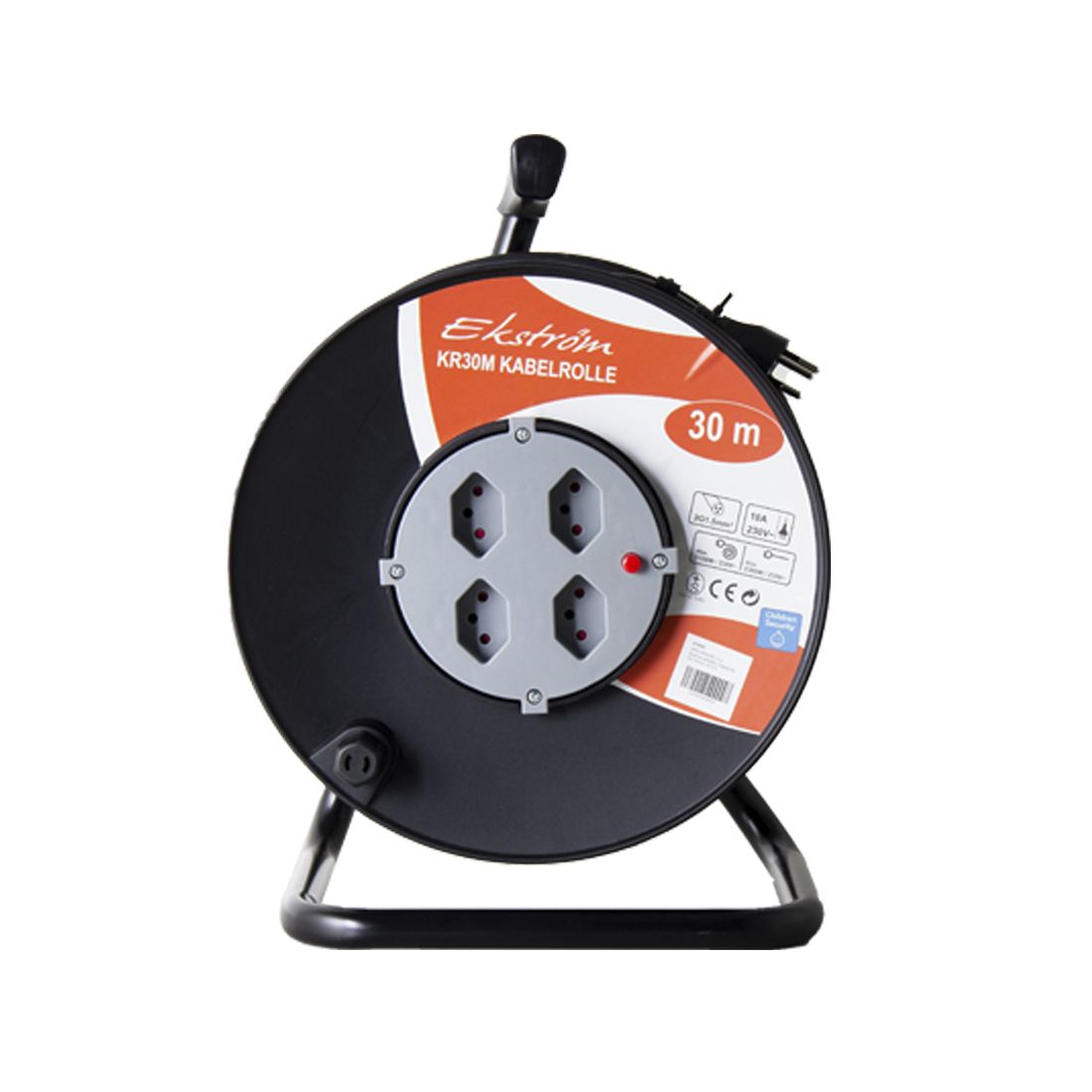 Mit der Ekström Kabelrolle ist bewegliches Arbeiten garantiert. Das praktische Design verhindert Kabelsalat und hinterlässt einen geordneten Eindruck, ob auf der Baustelle oder in der Werkstatt.