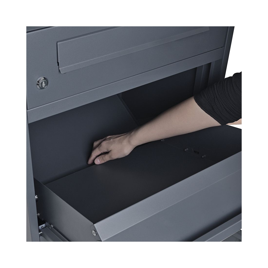 Der Paket-Briefkaste aus hochwertig verzinktem Stahl ist die ideale Lösung, um Pakete und Briefe sicher und stilvoll zu empfangen. Dank seiner zwei getrennten Fächer besteht jederzeit ein Überblick, indem Briefe und Pakete mühelos voneinander getrennt werden können. Ein besonderes Highlight ist die robuste Bauweise aus Stahl, die durch eine hochwertige Pulverbeschichtung veredelt wurde. Dadurch ist der Holmberg Paket-Briefkasten besonders langlebig und widerstandsfähig gegenüber äusseren Einflüssen.